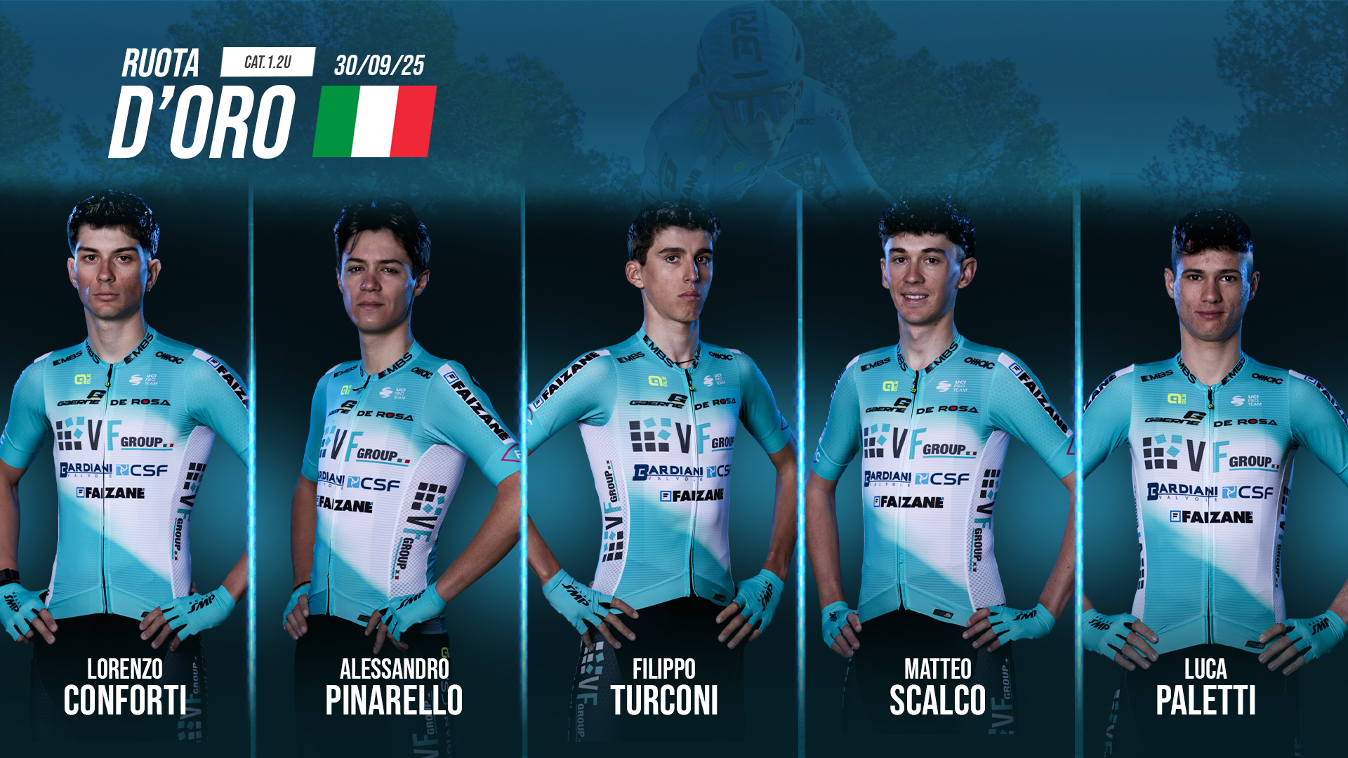 Nella stessa giornata andrà in scena anche la Ruota d’Oro, classica under 23 che si disputa a Terranuova Bracciolini (AR). Il percorso, lungo circa 173 chilometri, presenta un tracciato nervoso con i tipici saliscendi del Valdarno e ascese impegnative come Cima Monticello, Montemarciano e lo strappo del Valcello Cicogna, con arrivo previsto in Viale Europa. Per l’occasione il team italiano schiererà Lorenzo Conforti, Luca Paletti, Alessandro Pinarello, Matteo Scalco e Filippo Turconi, diretti dal direttore sportivo Luca Amoriello.