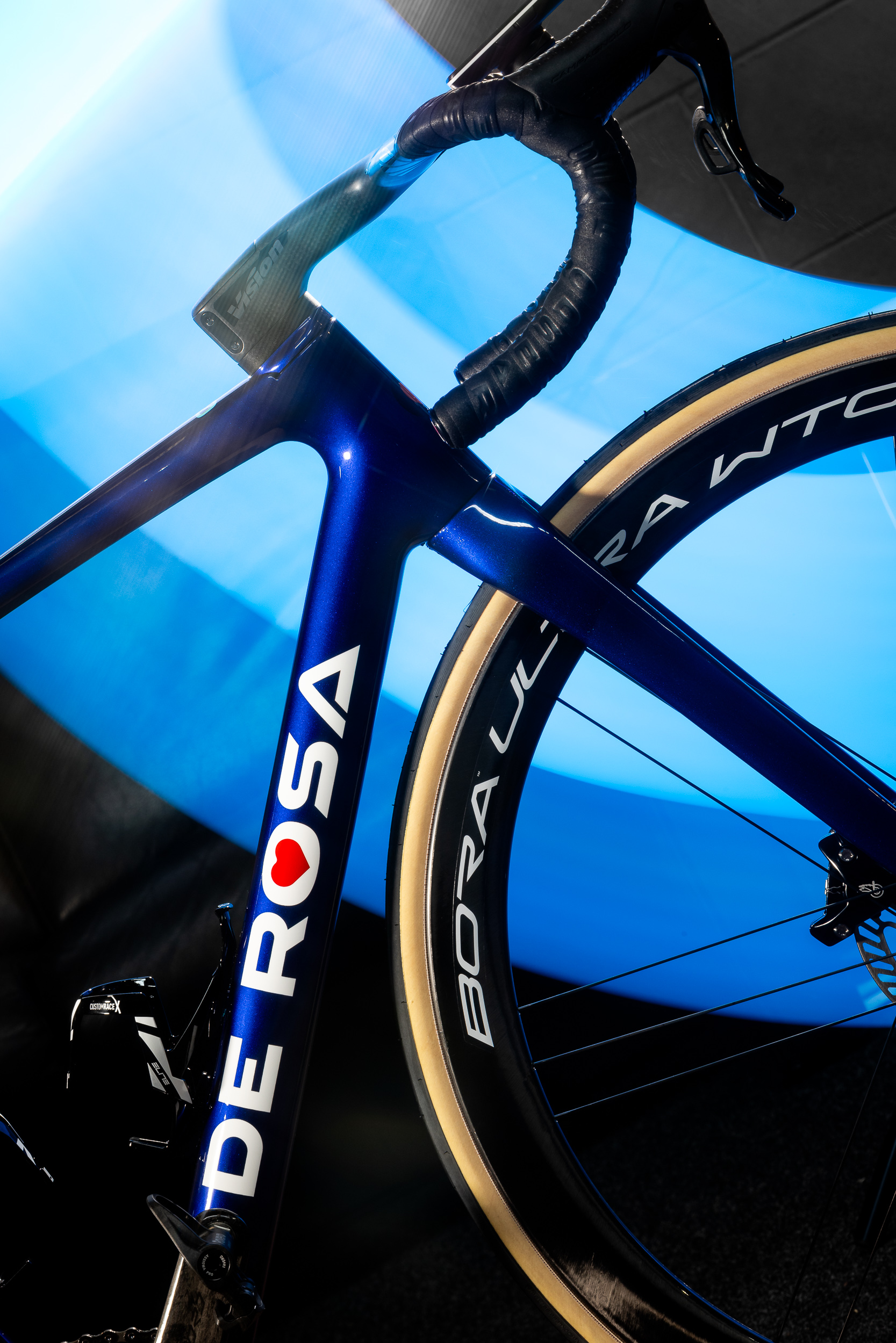 Cristiano De Rosa, presidente dell’azienda, ha commentato:«Ci è stato chiesto in anticipo quale sarebbe stato il nuovo colore della bici del team, ma volevamo mantenere la sorpresa. Sapevamo però fin dall’inizio che sarebbe stato un omaggio a nostro padre Ugo: il blu che ha sempre rappresentato eleganza, identità e la tradizione De Rosa. Per questo la scelta della livrea DNA Blu è stata naturale. Racconta chi siamo e il percorso che continuiamo a condividere con la famiglia Reverberi, con cui lavoriamo per il quarto anno consecutivo. È una collaborazione basata su valori comuni e sulla volontà di costruire, insieme, un progetto sempre più solido».