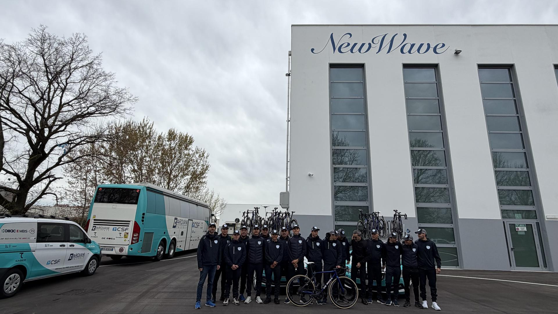 In occasione della terza tappa della Settimana Internazionale Coppi e Bartali, la Bardiani-CSF 7 Saber ha fatto visita allo stabilimento della New Wave a Codogno.