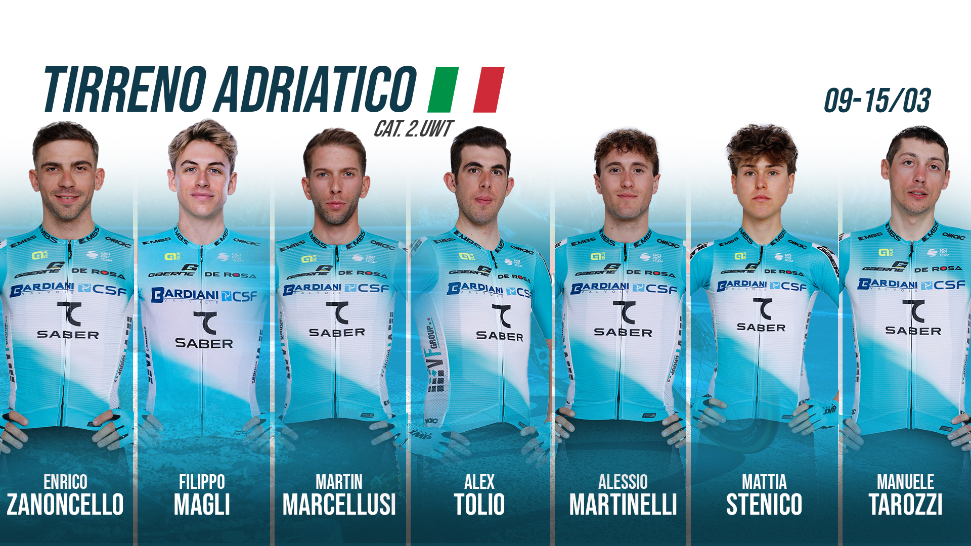 Bardiani-CSF 7 Saber will line up at the Tirreno-Adriatico, scheduled from Monday, March 9 to Sunday, March 15. The 61st edition of the renowned stage race will start from Lido di Camaiore and finish, after 1,165.5 kilometers, in San Benedetto del Tronto.